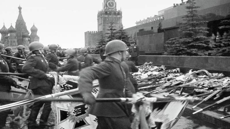 Но Красная армия внесла некоторые коррективы в планы гитлеровцев. Это привело к тому, что 26 июня 1945 года напротив мавзолея проходил самый важный парад в его истории. По Красной площади шли колонны победоносных советских войск, а группа солдат под гром барабанов бросала к подножию мавзолея знамёна поверженных немецких дивизий. Сегодня, путинская власть олигархов, захватив страну и отобрав у ее народа все советские социальные завоевания и природные ресурсы, тоже готовится к своему параду "Победы". «Парадом Победы над советским народом». Этот "Парад" в этом году пройдет в историческую дату проведения первого победного Парада в 1945-м. Президент не случайно выбрал эту дату после критики в адрес властей России, которые 9 мая не рискнули устраивать торжества из-за эпидемиологической ситуации, а в соседней Белоруссии не побоялись, и положение не ухудшили. Дата 24 июня могла бы оказаться даже более примечательной в свете того, что год этот необычный, а юбилейный, и провести парад теперь можно максимально аутентично. Но эксперты напоминают, что 24 мая 1945 года советские войны-победители кидали немецкие штандарты и знамена не куда-нибудь, а к подножию Мавзолея, что было наполнено смыслом Победы социализма над нацизмом. В постсоветской же России принято драпировать Мавзолей на 9 мая.
